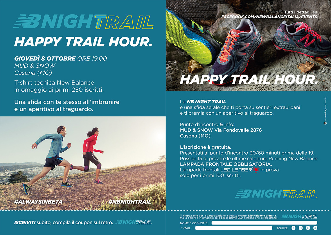 Possibilità di provare le ultime calzature Running New Balance. Lampada frontale obbligatoria.