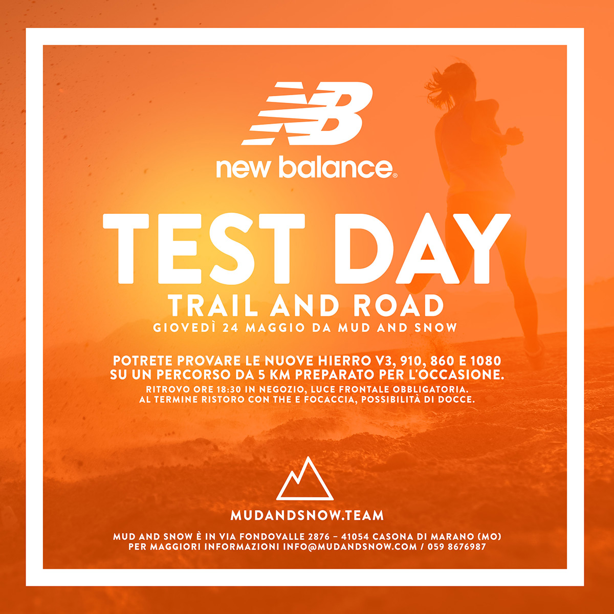 Giovedì 24 Maggio da Mud and Snow Potrete provare le nuove Hierro V3, 910, 860 e 1080 su un percorso da 5 Km preparato per l’occasione.
